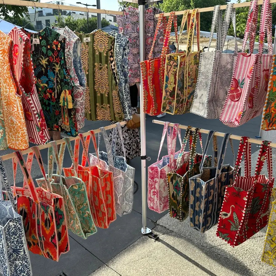 The summer of 2024 marked the birth of Bokabas. We launched our first reversible quilted cotton tote bags, handmade in India. Our first market in Contis was the starting point of a wonderful adventure, where we met our first customers, captivated by the authenticity, colors, and originality of our creations.